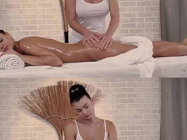 Big breasted babe Lucy Li enjoys a wet massage and seduces