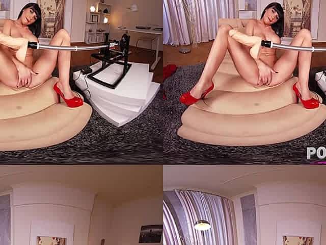 Sweet Vyona rides cock machine