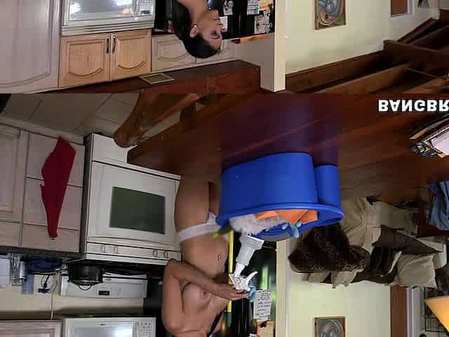 Very hot amateur Maid fucked in the ass with heels in the kitchen