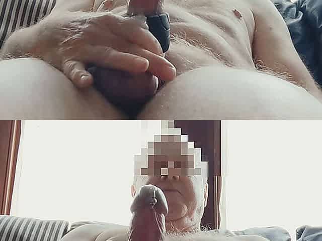 A voyeur surprises an grand-daddy on a naturist beach.