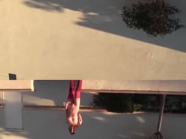 Sporty flexible babe Maria does splits and masturbates in the garden