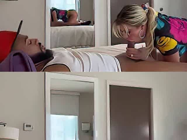 Blonde MILF gives her husband a sensual massage and POV experience.
