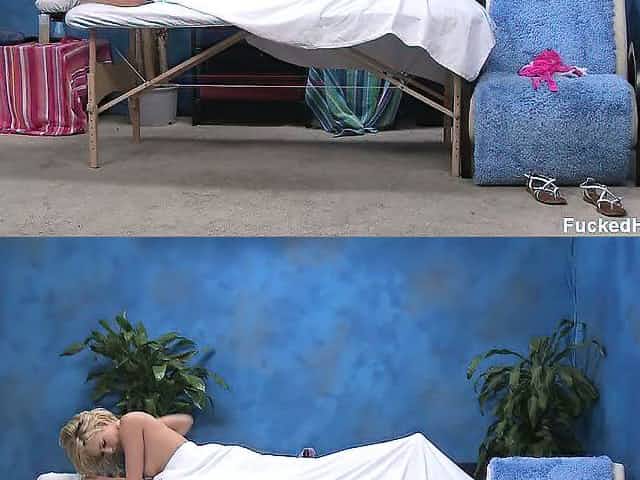 Golden haired girl is seduced by a massage