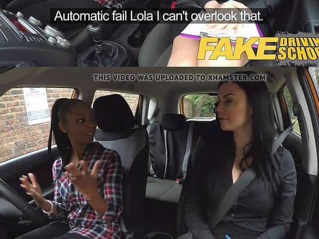 Fake Driving School busty ebony fails her test with lesbian