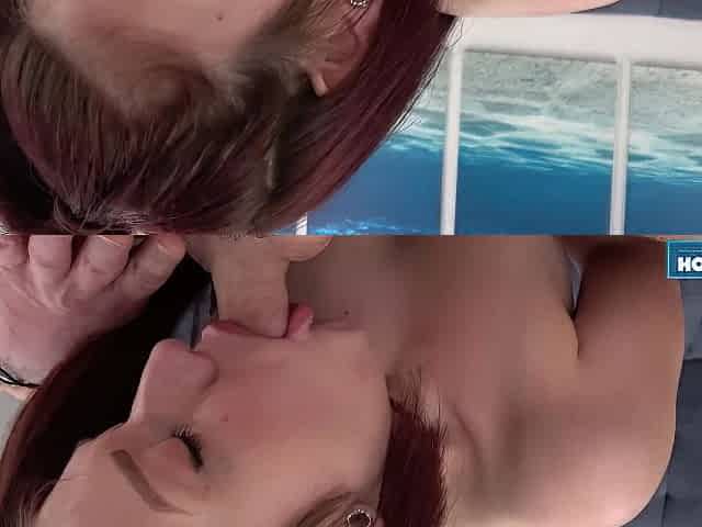 "POV of redhead Gwen Amani who is a master at blowjob"