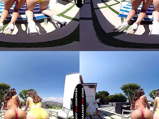Abby Lee Brazil & Aria Lee in Step mom & I Share Your Cock While Masturbating Together - RealHotVR