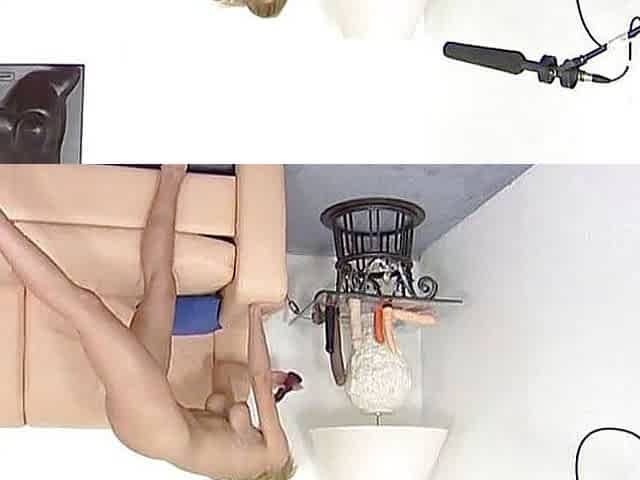 Superb blonde masturbates with dildo