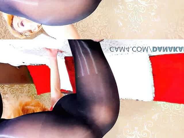 Femme fatale in red stockings and high-heels Sophy enjoys her masturbation