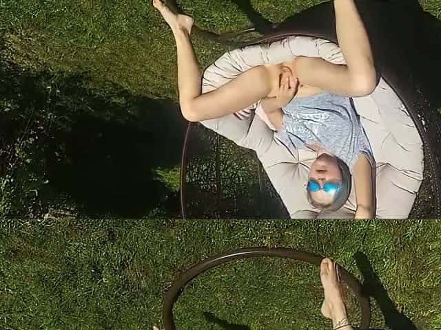 Foxy solo wife Rachel opens her legs in back yard to masturbate