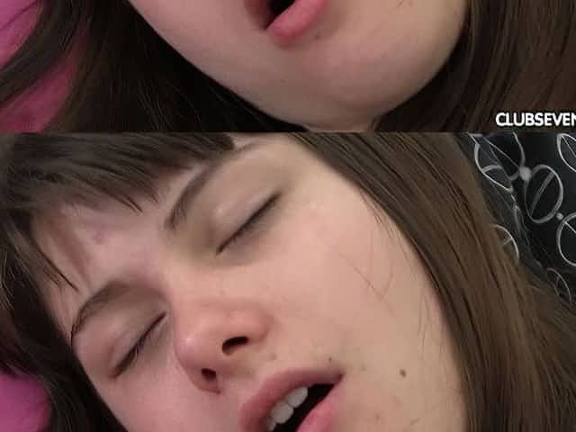 Brunette doll teases by fingering the clit in slow motion