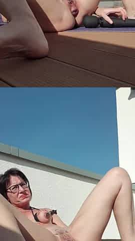 Neighbor Fondles Pussy and Her Big Tits