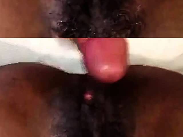 Hairy ebony MILF fucks and creams white boy cock