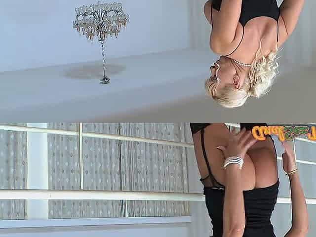 Top heavy blonde whore hangs on for dear life with a BBC up her nice ass