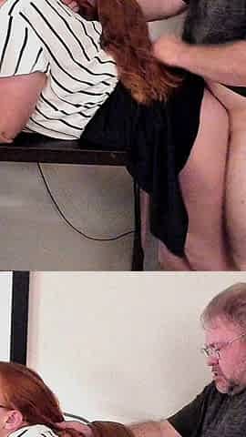 Teacher Lets Her Long Red Hair Down for Rough Hair Pulling Fuck Bent Over Desk