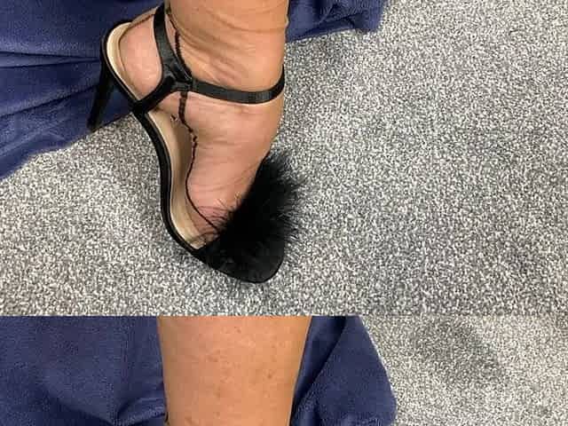 Mrs Mature Feet Wearing Her Sexy Fluffy Sandals and a New Bra