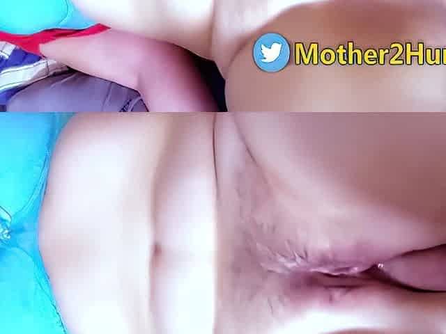 Hot chubby stepmom with big natural tits and I cum on her pussy