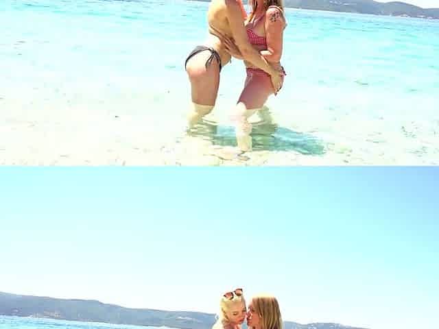 Horny British Milf and her young girlfriend enjoy each other's pussies on the beach