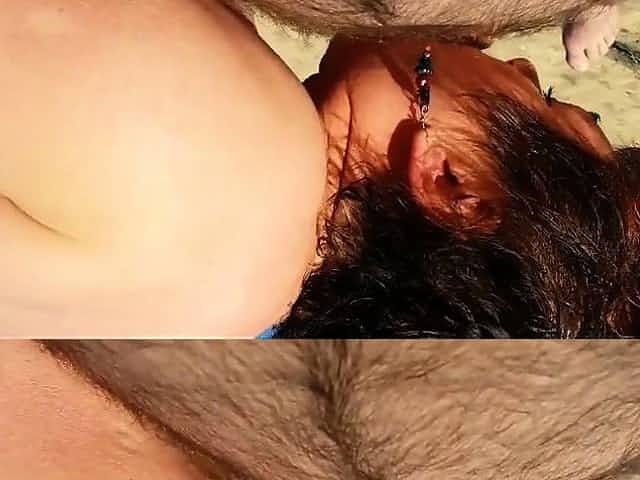 AGED MOTHER, MASTURBATION ON THE BEACH IN FRONT OF HER STEP SON