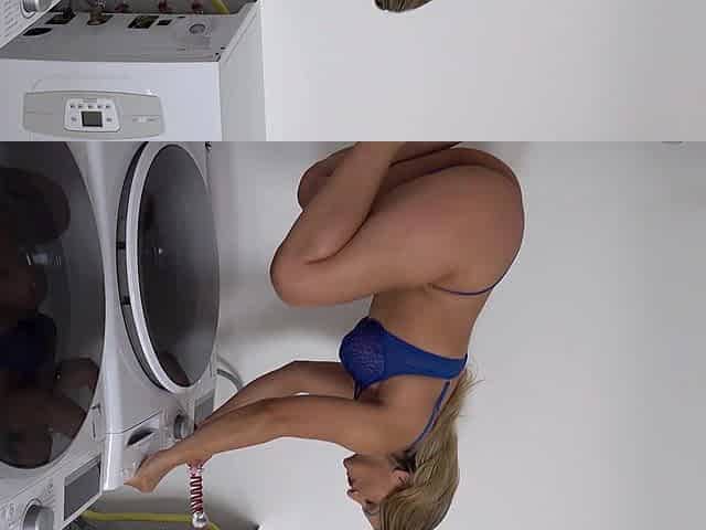 Blond aged goes out of the brassiere in changing room