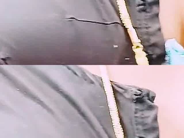 Big dick pulled out of pants of TV repairman