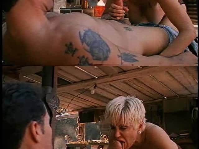 Blonde Cindy Gold with natural tits sucking her lover's dick