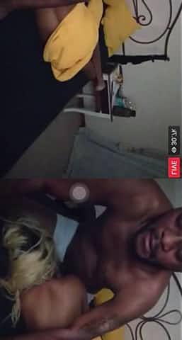 Dark-skinned couple recording their homemade sex tape