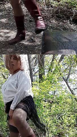 amateur crossdresser kellycd2022 stripping pissing and masturbating outdoor in the woods