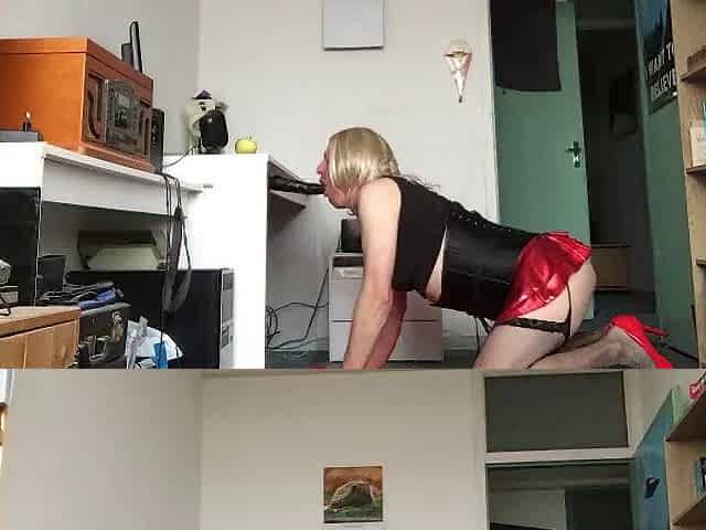 Sissy in stockings rides BBC dildo
