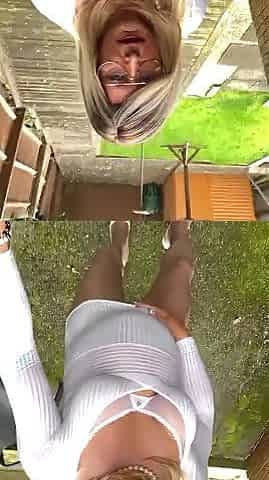 Amateur shemale Kellycd2022 sexy milf outdoors masturbating my big cock sissy in white basque and stockings