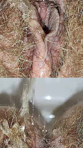 Large Unshaved Mamma's Twat Peeing and little Farting Closeup