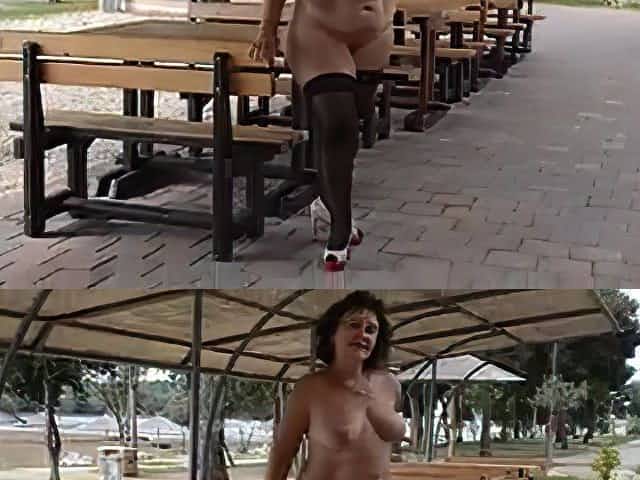 Fat ass mature walking naked in public