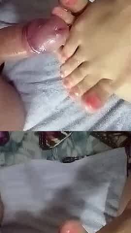 giving footjob and cum