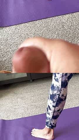 "Jerking to wife's feet while she stretches "