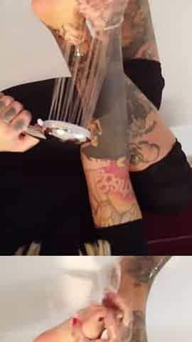 Tattooed blonde MILF washes her feet