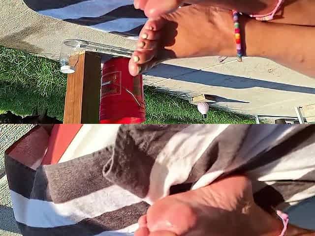 Selena enjoys the sun while giving a footjob
