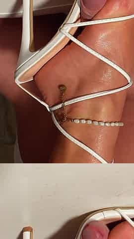 White Heeljob & Shoejob From Blonde with White Toes - Cum on Feet