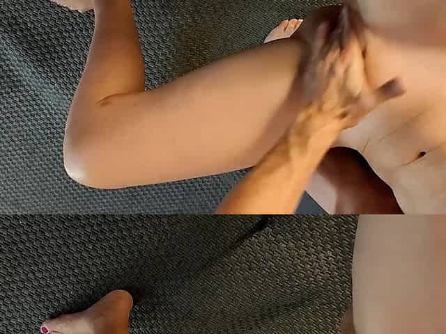 My lover Teresa gives me a tugjob, I lick her shaggy twat then I cum on her foot