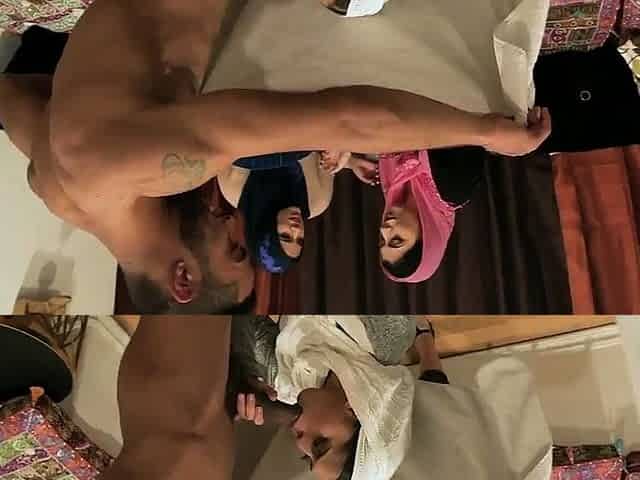 Slutty and busty Bombay whore in gangbang style fuck