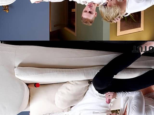 Mom in glasses doggy style on the couch gives a step son deep in the throat and pussy - Cory Chase