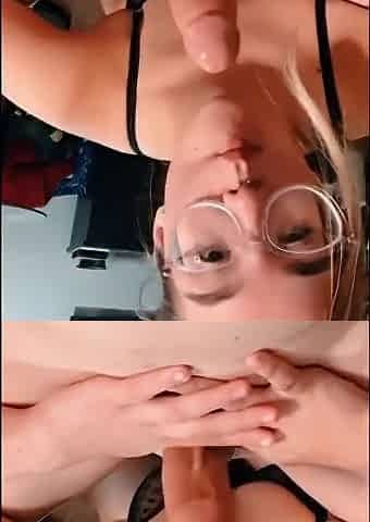 Russian Amateur Babe in Glasses Gives a Blowjob