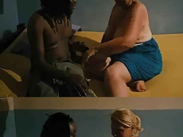 A couple of mature men have messy 3 some with kinky fattie