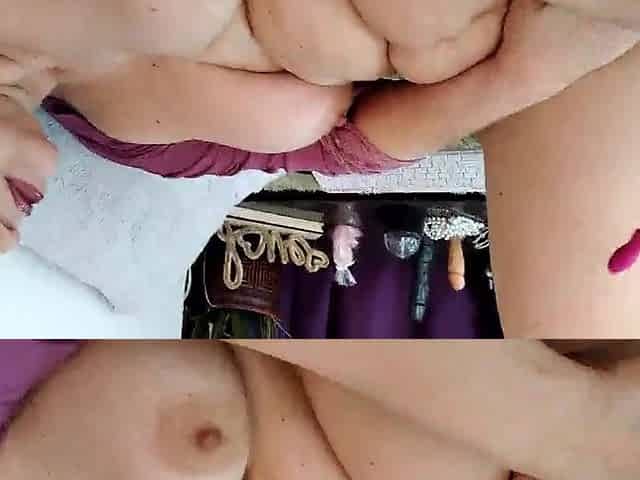 A super sexy brunette massages her big boobs