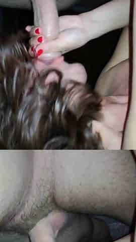 My wife gives a deepthroat blowjob and masturbates with my cock at home