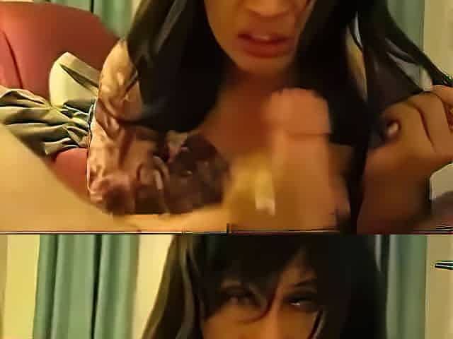 Mature Asian wife jerks a big dick until it rains cum