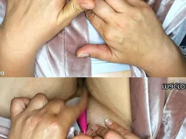 Hot brunette big boobs toying pink pussy