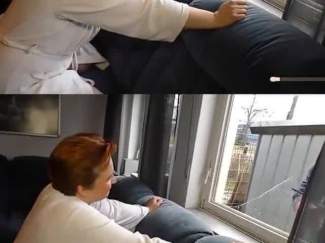 Slim and sexy mature lady on the couch pounded in her loose pussy