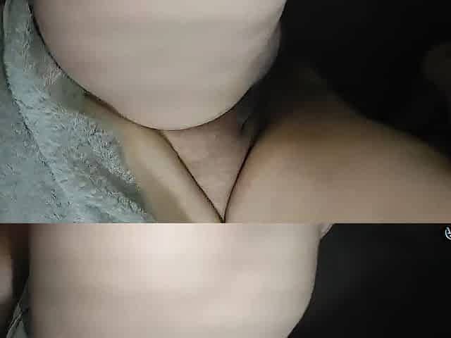 Chubby woman with big tits moans while fingering her cunt