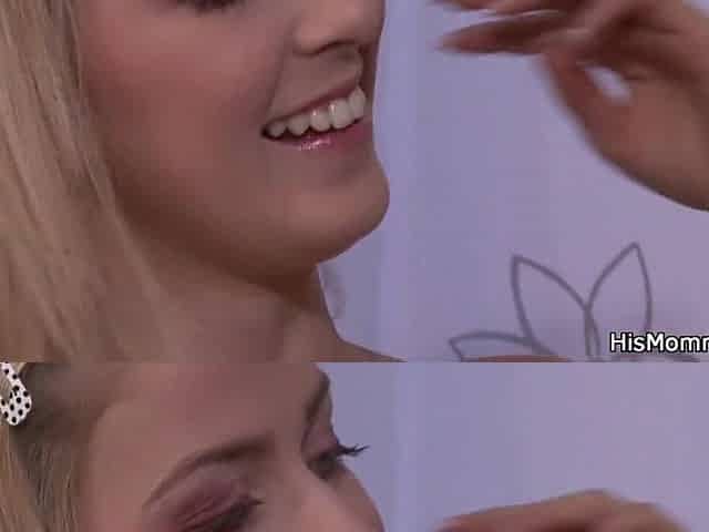 Mature lesbian seduces sons girlfriend while warming up with a vibrator