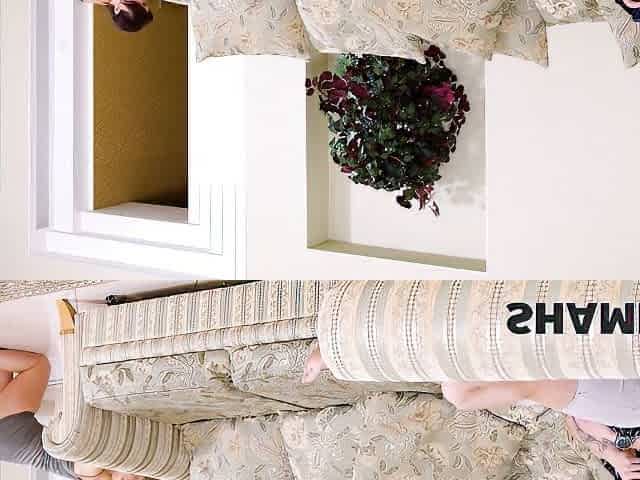 Dirty and disgusting brunette whore wife gets fucked from behind on sofa