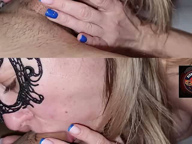 Weird blonde MILF has a voracious appetite for cum and gives stout BJ